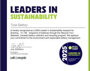 Total Battery recognized as 2025 Leader in sustainability for battery recycling